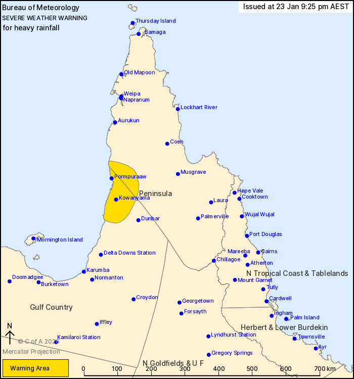 the western Cape York Peninsula coast. Persistent, heavy showers