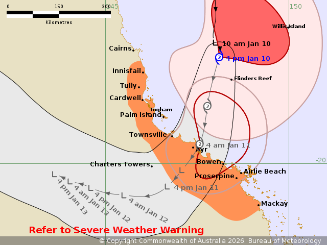 Warning zone: Innisfail to Mackay, including Townsville, Palm
