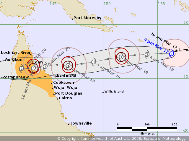 Lockhart River to Port Douglas, and adjacent inland areas.