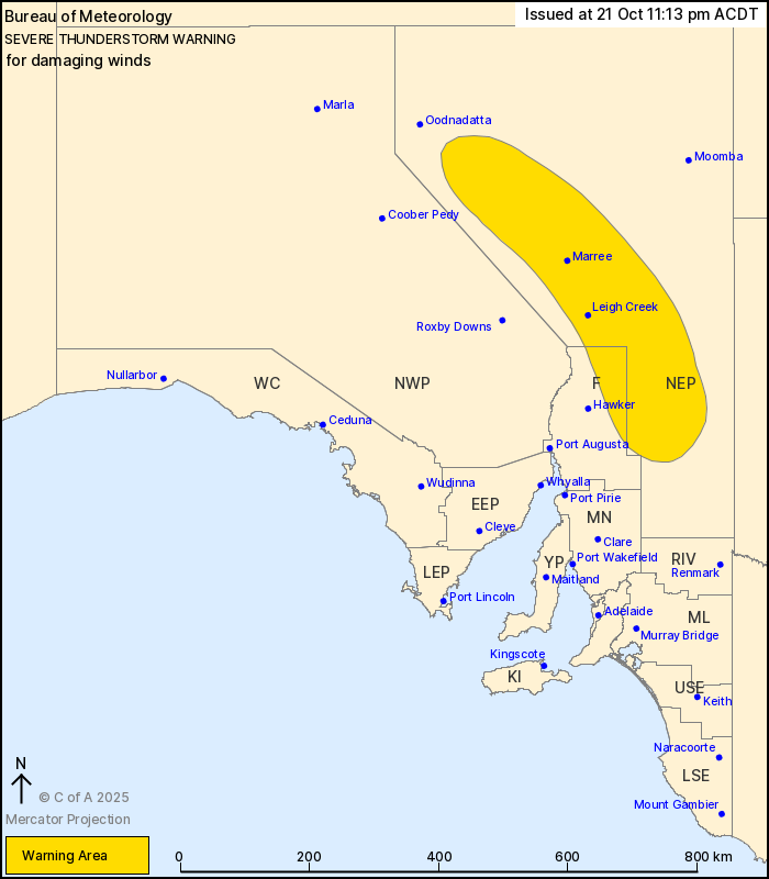 affected include Leigh Creek, Marree, Arkaroola and Olary.