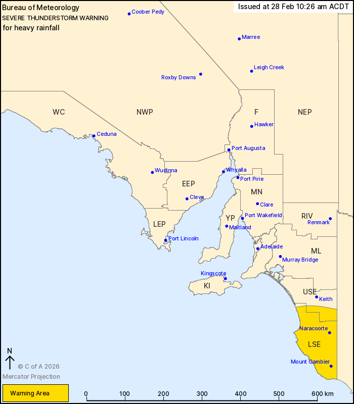 Naracoorte recorded 28.2mm in the 2 hours to 10:15am.