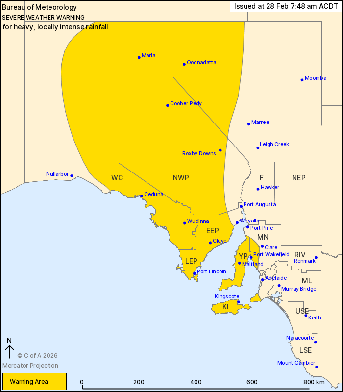 LOCALLY INTENSE RAINFALL EAST OF SPENCER GULF, HEAVY RAINFALL