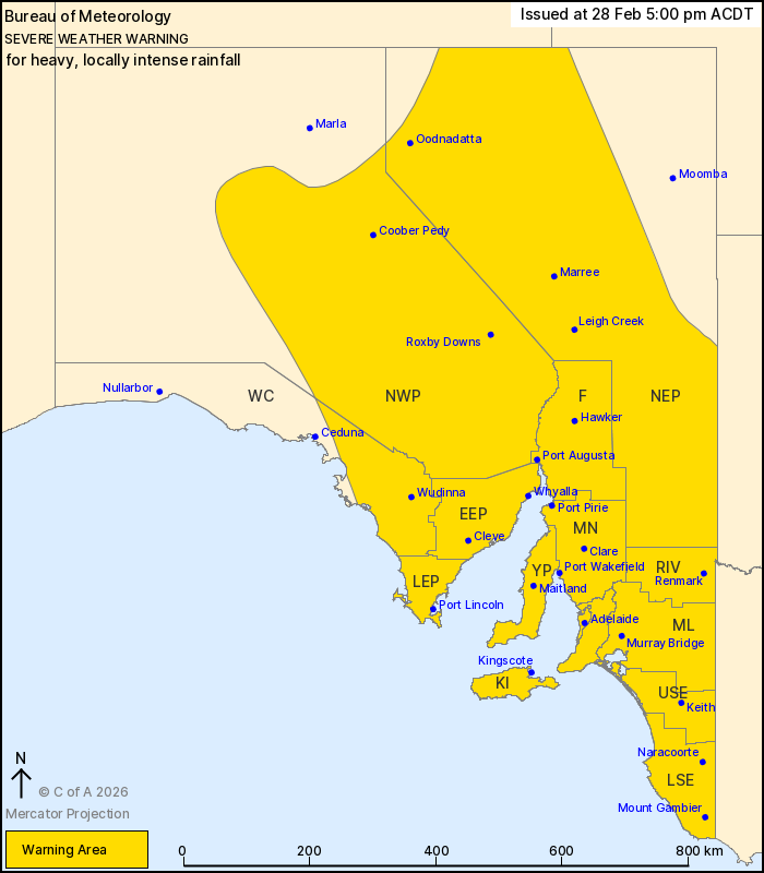 HEAVY, LOCALLY INTENSE RAINFALL THROUGH MUCH OF SOUTH AUSTRALIA,