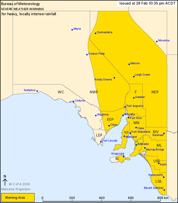 HEAVY, LOCALLY INTENSE RAINFALL THROUGH MUCH OF SOUTH AUSTRALIA,
