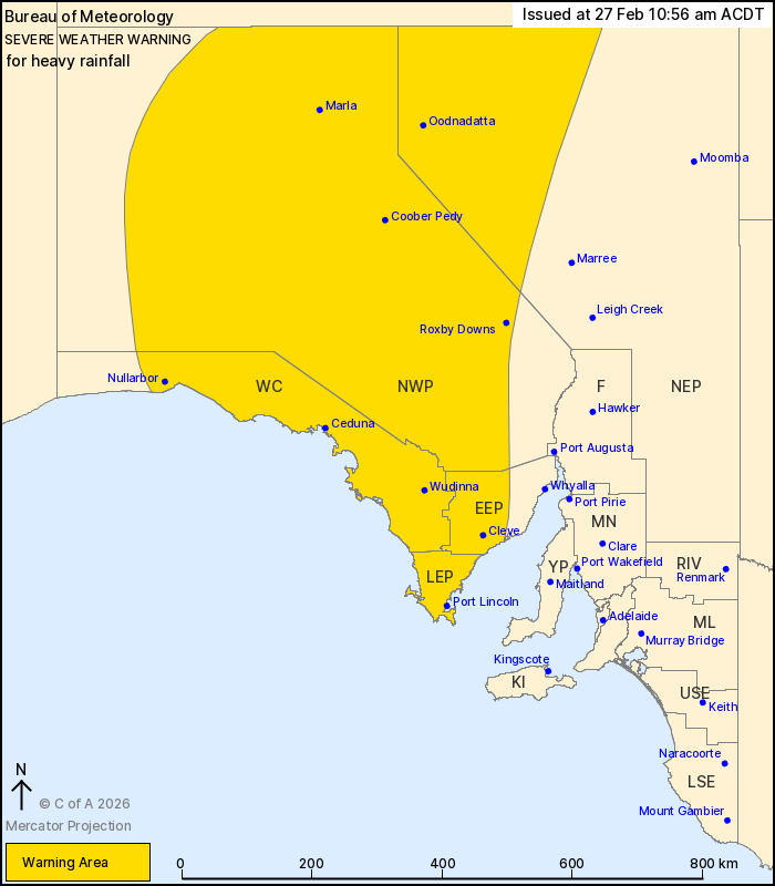 Marla, Coober Pedy, Roxby Downs and Wudinna.