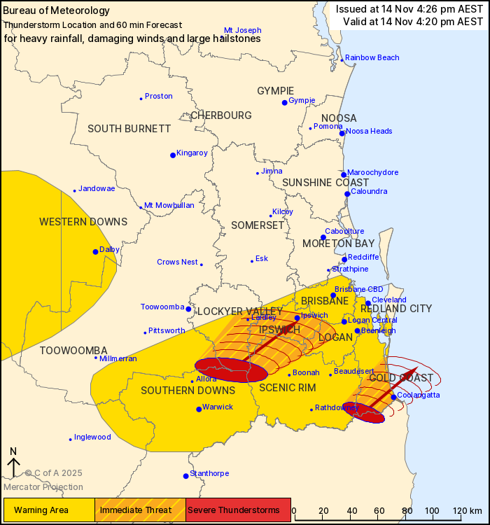 The Bureau of Meteorology warns that, at 4:20 pm, severe