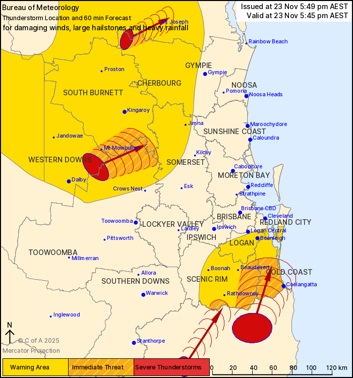 The Bureau of Meteorology warns that, at 5:45 pm, severe