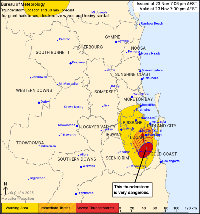 The Bureau of Meteorology warns that, at 7:00 pm, a VERY DANGEROUS