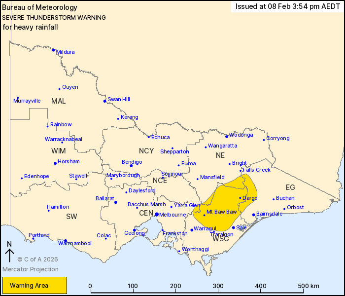hours. Locations which may be affected include Dargo, Mt Baw Baw