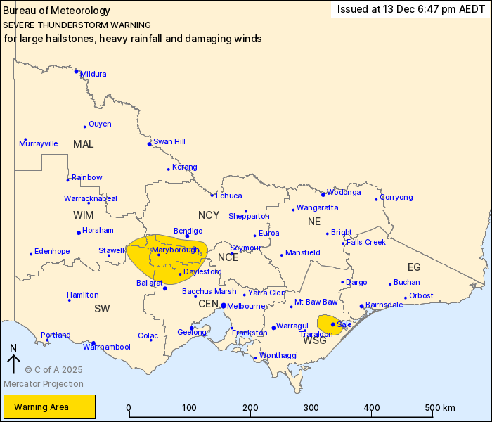 which may be affected include Maryborough, Daylesford, Castlemaine