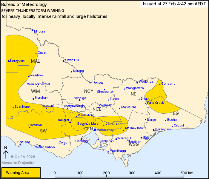 which may be affected include Ballarat, Stawell, Hamilton, Bacchus
