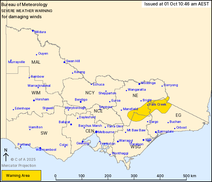 Locations which may be affected include Falls Creek, Mt Hotham and