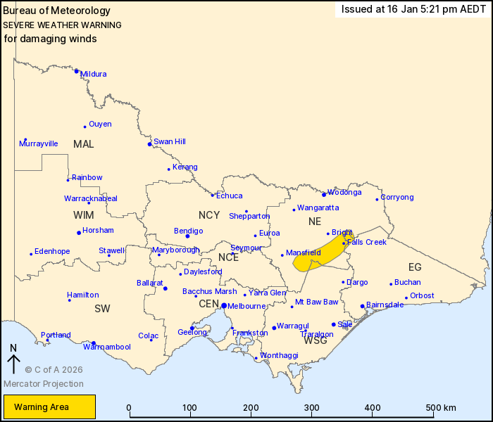 Locations which may be affected include Falls Creek, Mt Hotham and