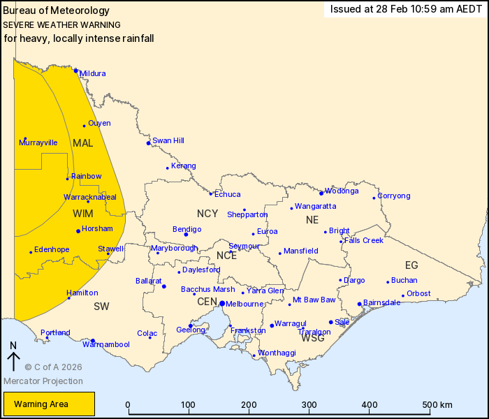 Locations which may be affected include Mildura, Horsham, Stawell,