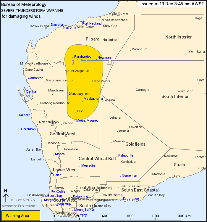 affected include Meekatharra, Newman, Paraburdoo, Tom Price, Cue