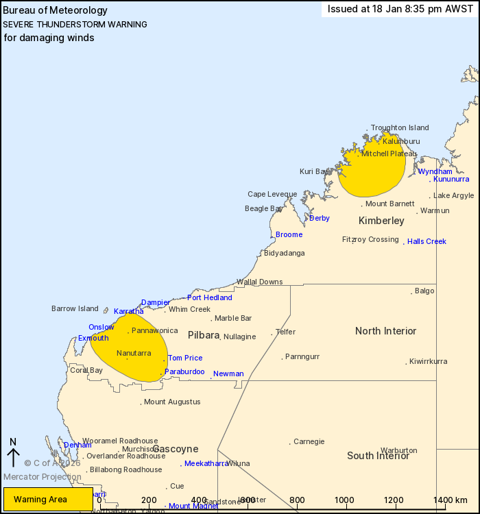 affected include Onslow, Paraburdoo, Tom Price, Kalumburu, Mitchell