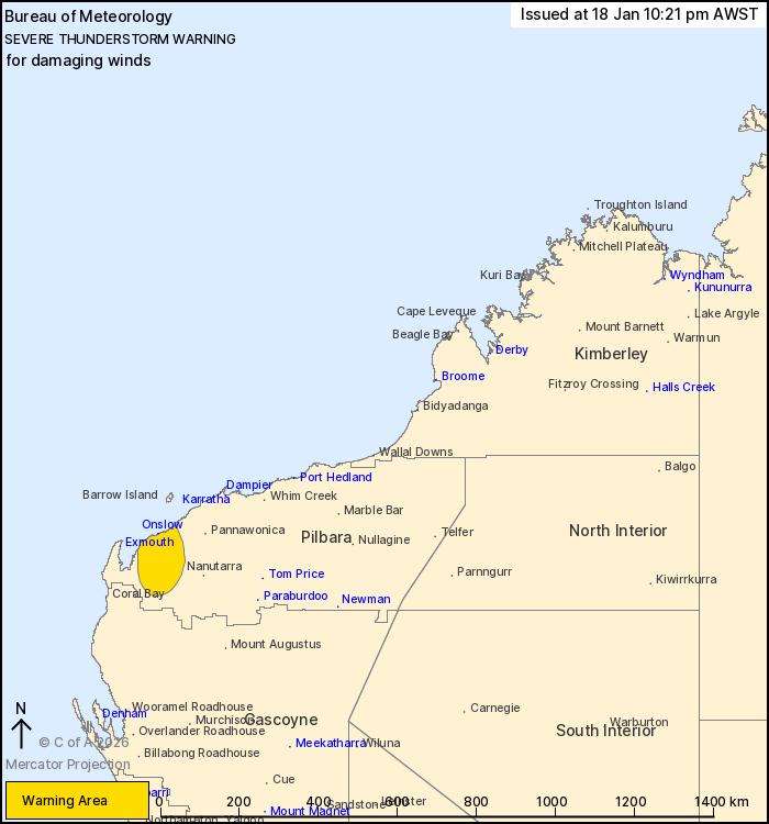 Mardie recorded a 96 km/h wind gust at 8.22pm.