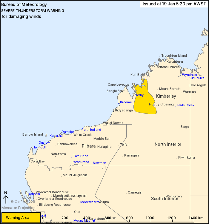 Weather Situation: A very moist airmass and strong easterly flow across the Kimberley is driving squall activity this afternoon, with the risk of damaging wind gusts ahead of and along the line of thunderstorms.