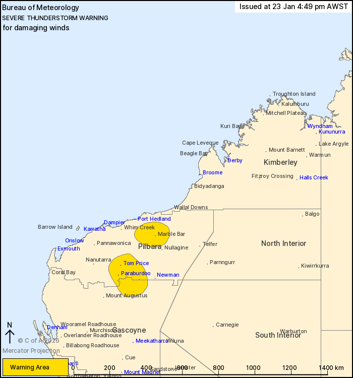 affected include Paraburdoo, Tom Price and Marble Bar.
