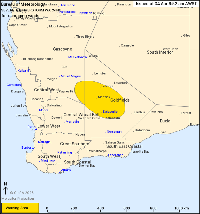 Damaging gusts a risk with thunderstorms about the Goldfields this