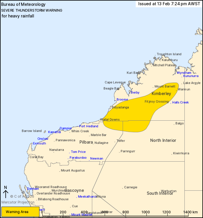 {smsmessage:WA Severe T'Storm: Heavy Rain. Fitzroy Crossing,