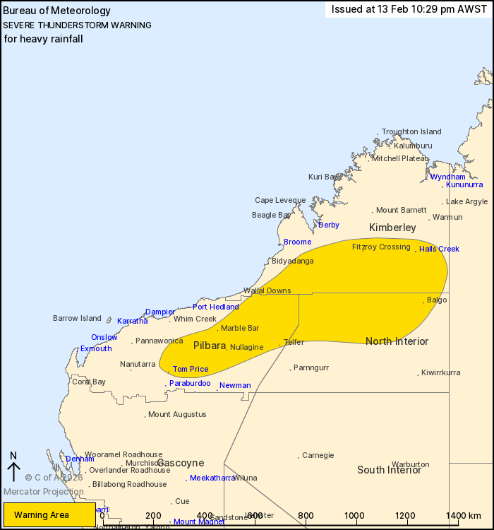 {smsmessage:WA Severe T'Storm: Heavy Rain. Halls Creek, Tom