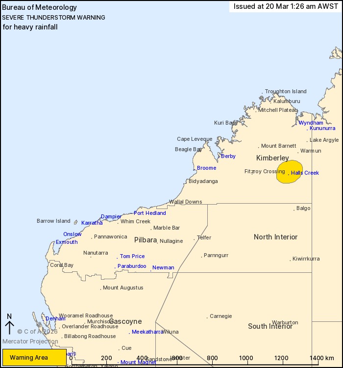 hours. Locations which may be affected include Halls Creek.