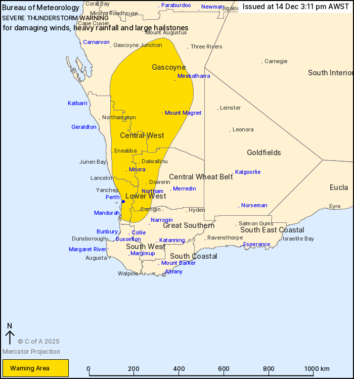 be affected include Mandurah, Meekatharra, Moora, Mount Magnet,