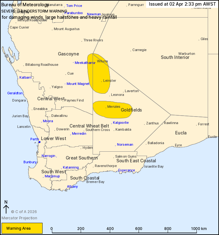 be affected include Leinster, Menzies and Wiluna.
