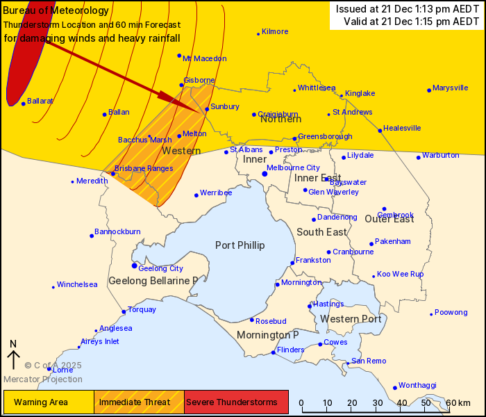 The Bureau of Meteorology warns that, at 1:15 pm, a severe