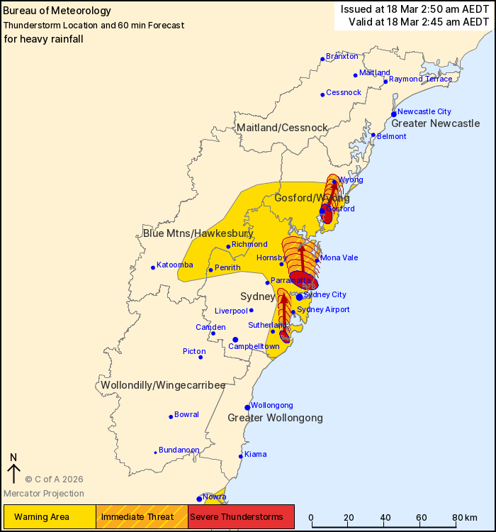 The Bureau of Meteorology warns that, at 2:45 am, severe