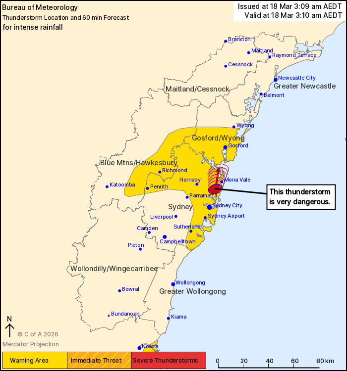 The Bureau of Meteorology warns that, at 3:10 am, a VERY DANGEROUS
