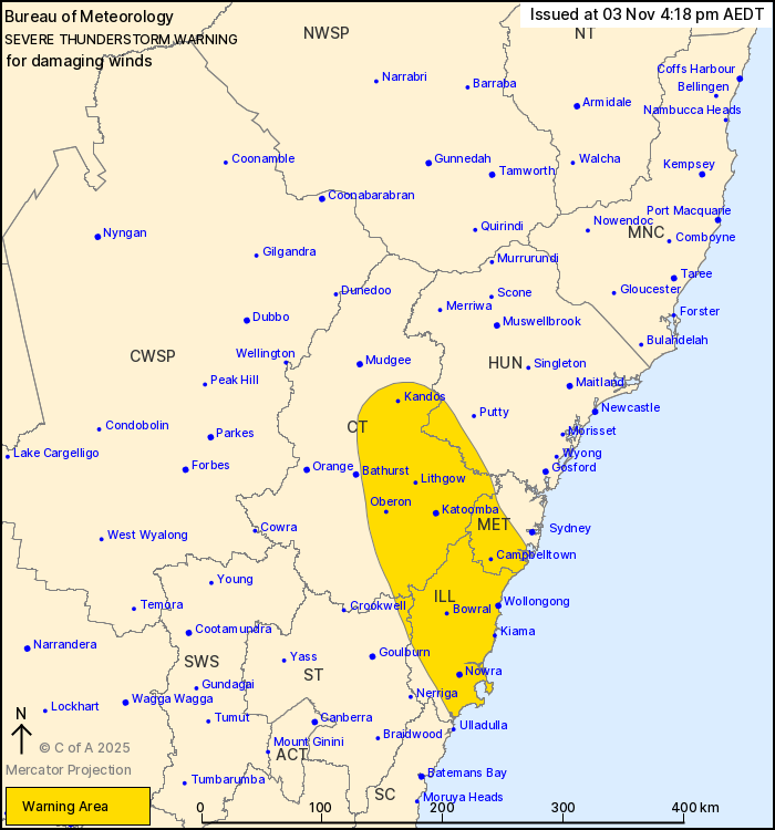 affected include Wollongong, Nowra, Katoomba, Penrith, Parramatta