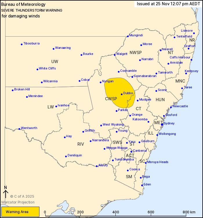 affected include Dubbo, Wellington, Narromine, Gilgandra and Peak