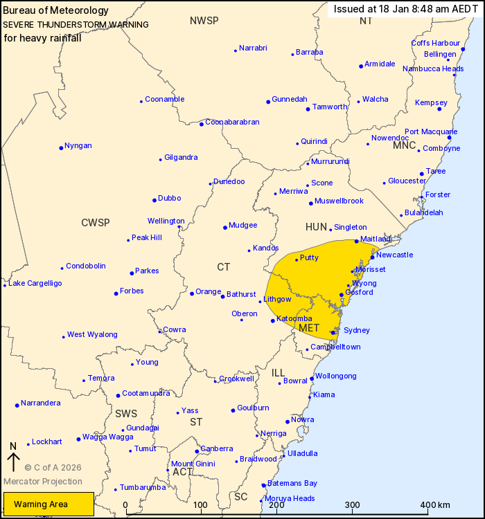 Heavy rainfall ongoing about parts of Sydney and the Blue