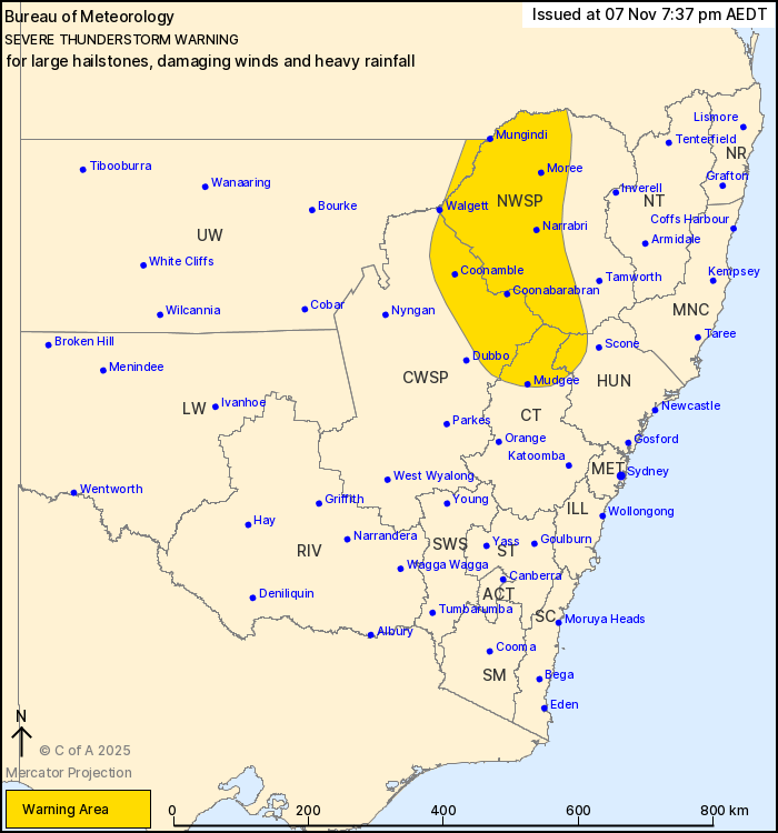 may be affected include Moree, Mudgee, Narrabri, Mungindi,