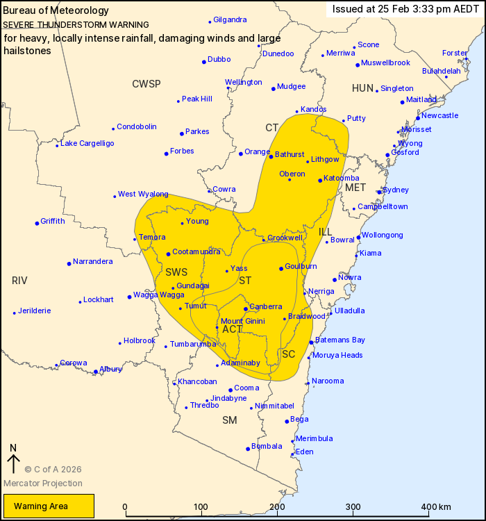 THE ACT AND SOUTHERN TABLELANDS. Severe thunderstorms with heavy