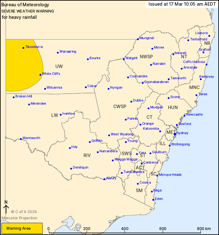 Locations which may be affected include Tibooburra, White Cliffs,
