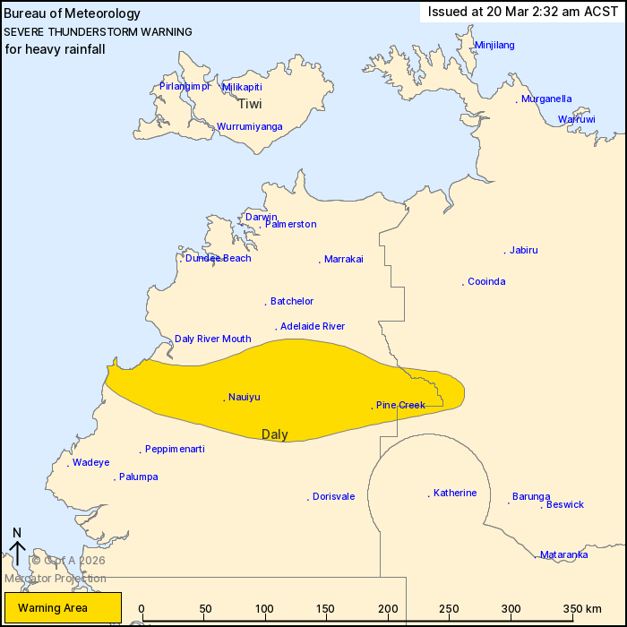hours. Locations which may be affected include Nauiyu, Pine Creek