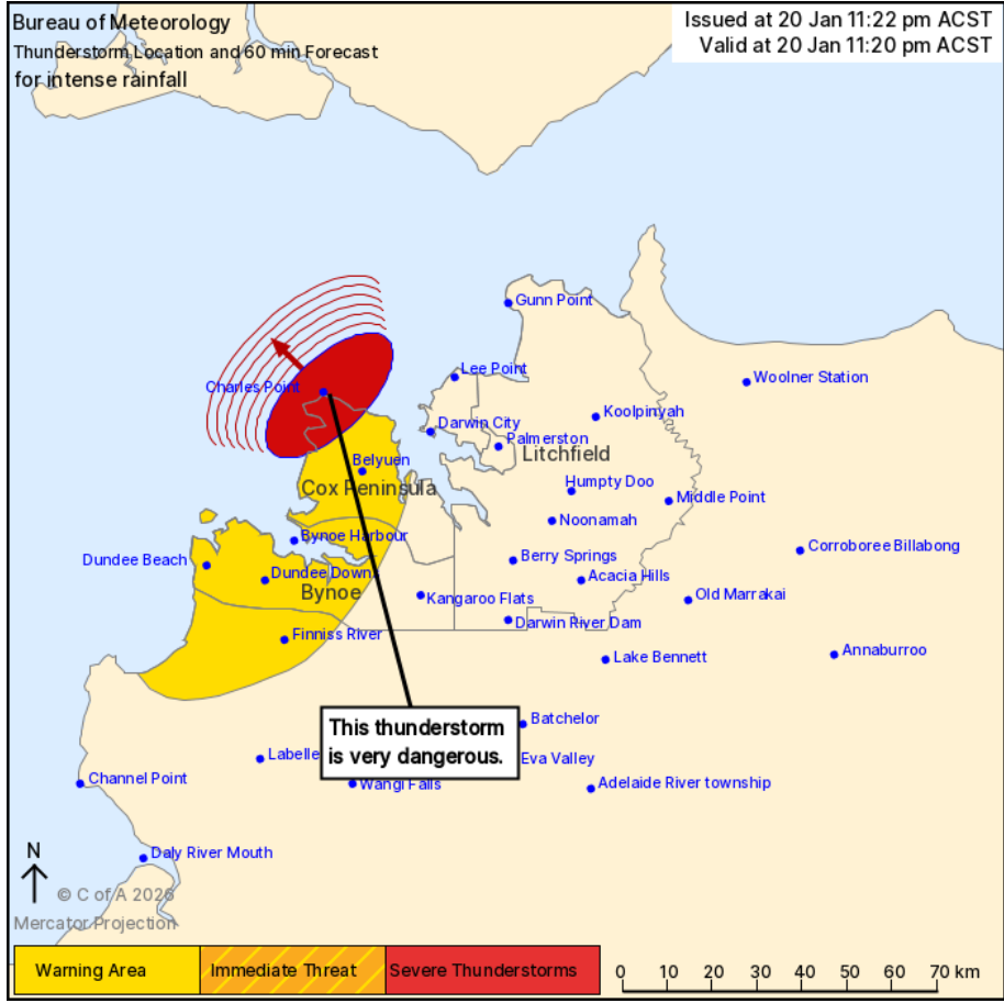 The Bureau of Meteorology warns that, at 11:20 pm, a VERY