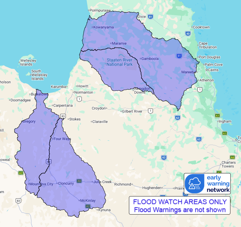 A trough and moist tropical airmass lingers across the southern Gulf of Carpentaria Coast and Cape York Peninsula. This trough may bring moderate to locally heavy rainfall across parts of the Cape York Peninsula and Gulf Country that will begin to ease from Saturday. Further flooding is possible over the next few days.