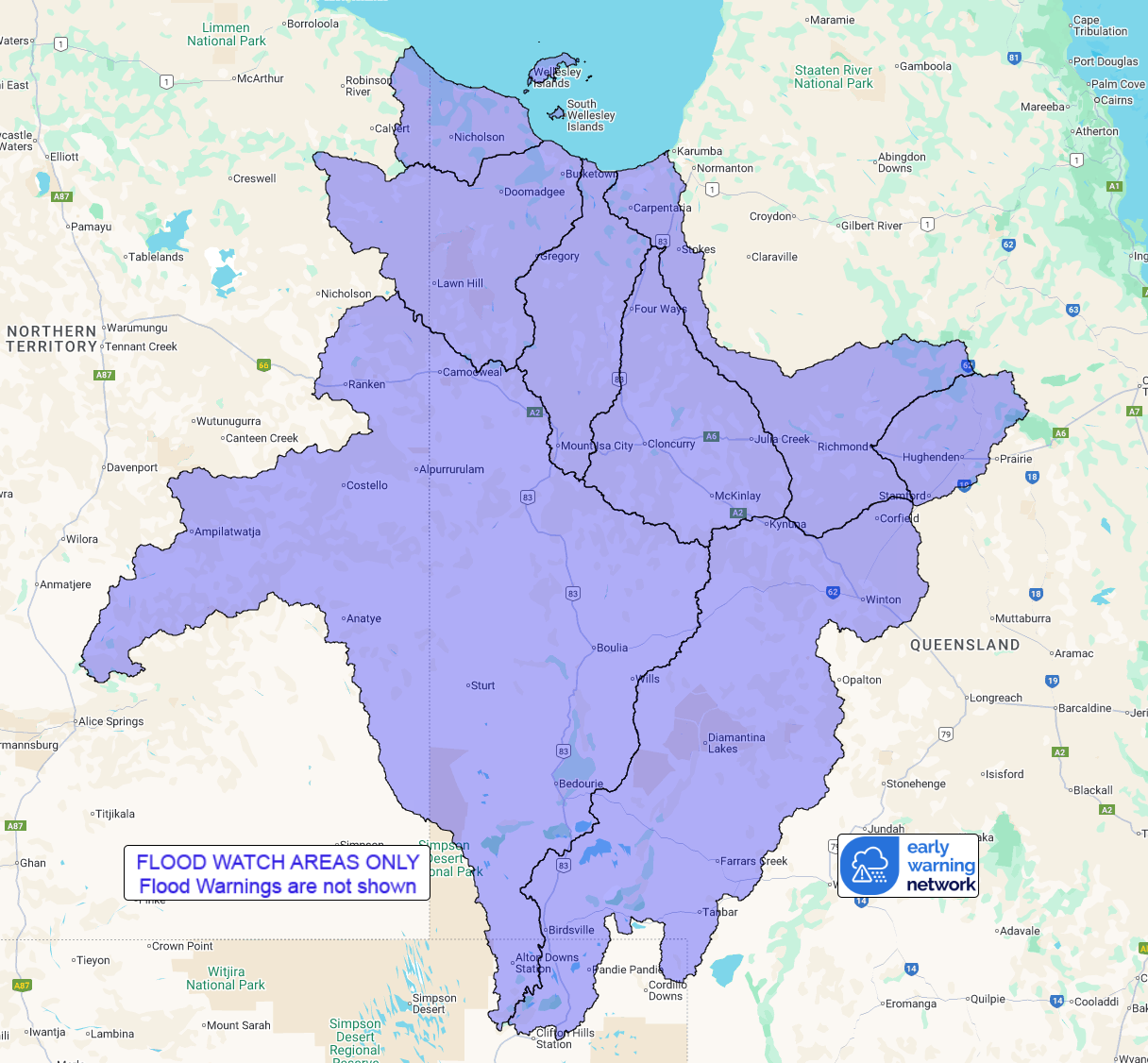 A Flood Watch is current for parts of the Barkly and Carpentaria