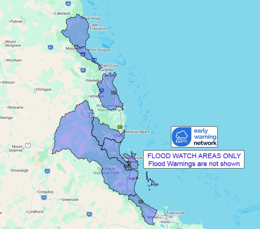 Catchments across the Flood Watch area remain relatively wet