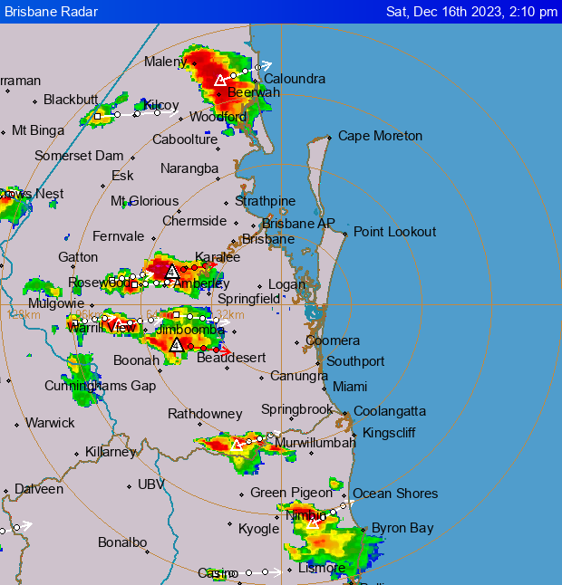 Issued: 14:14 Saturday, 16 December QLD Large hail has been detected on Brisbane radar near Landsborough.
