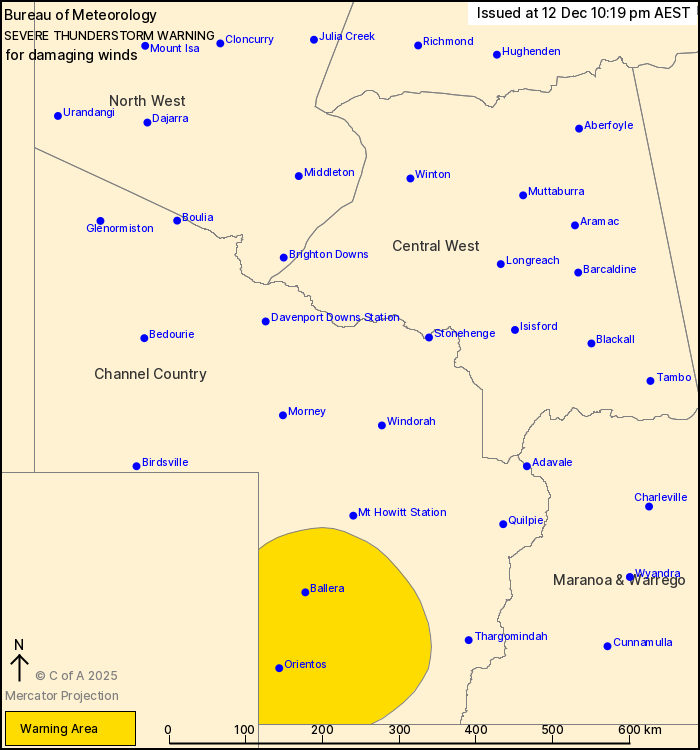 affected include Ballera, Orientos, Bulloo Downs and Nappa