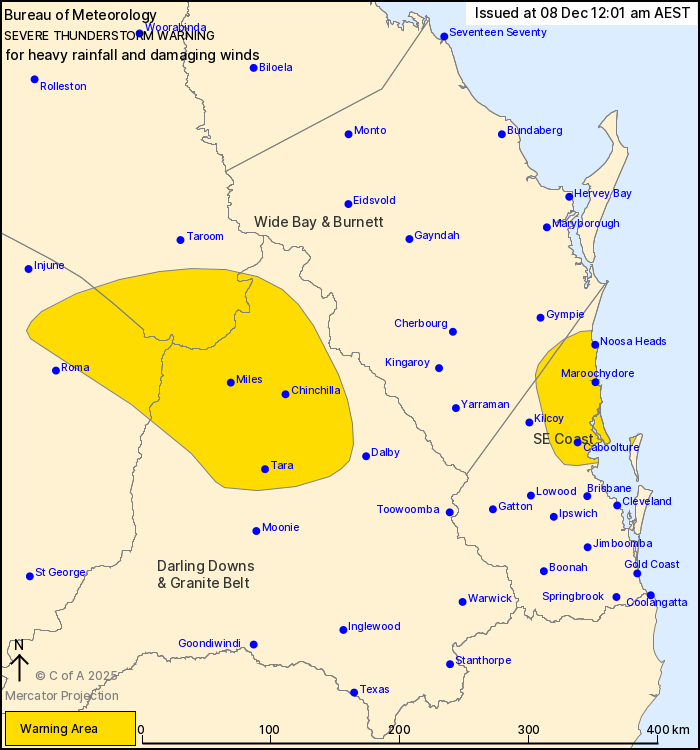 affected include Maroochydore, Caboolture, Noosa Heads, Tara,