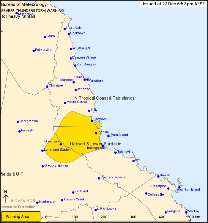 hours. Locations which may be affected include Ingham, Cardwell,