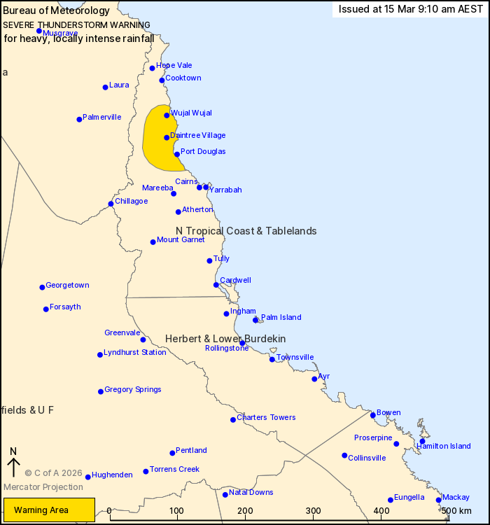 LOCALLY INTENSE RAINFALL NEAR MOSSMAN.