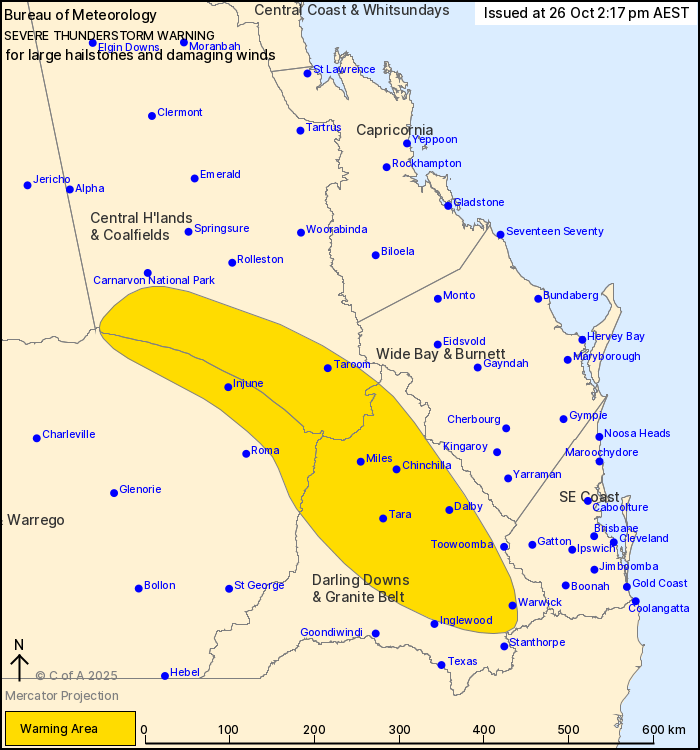 Locations which may be affected include Warwick, Dalby, Taroom,