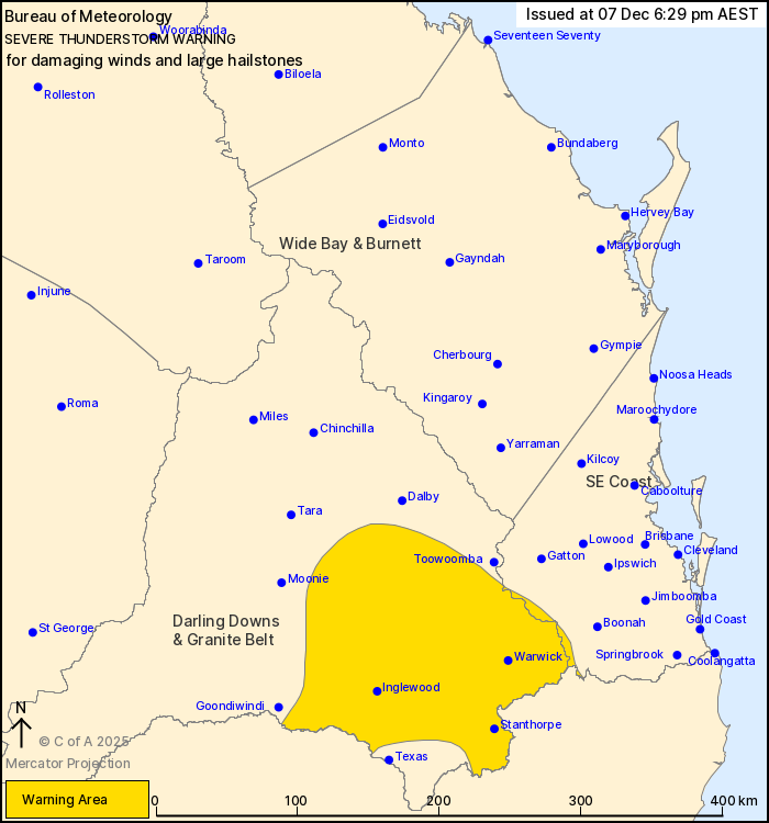 Locations which may be affected include Warwick, Stanthorpe,